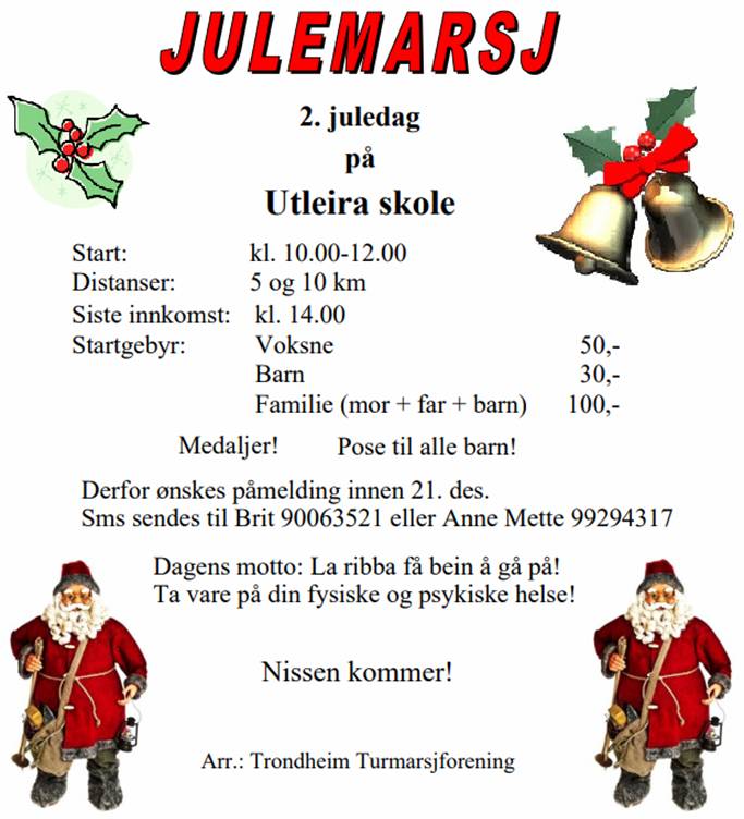 | Meny | Hva gjør vi? Trondheim Turmarsjforening har som formål å fremme folkesport i Trondheimsområdet. Som navnet sier, driver vi mest med turmarsjaktiviteter. Foreningen er tilsluttet Internationaler Volksportverband (IVV) gjennom Norges Turmarsjforbund (NTF). Trondheim Turmarsjforening arrangerer ca femti turer/vandringer i året av diverse kategorier. Sommerserien og Vinterserien arrangeres nesten hver uke gjennom hele året, med unntak av i feriene. Vårsleppet, Sommertrimmen, Høstvandringen og Julemarsjen er landsomfattende fellesmarsjer. I slutten av september arrangerer vi Tine-marsjen, Ormen Lange(m/100 km) og Trondheimsmarsjen. Trondheim Byvandring og Trondheim Rundvandring har faste løyper som kan gås når man vil hele året. |